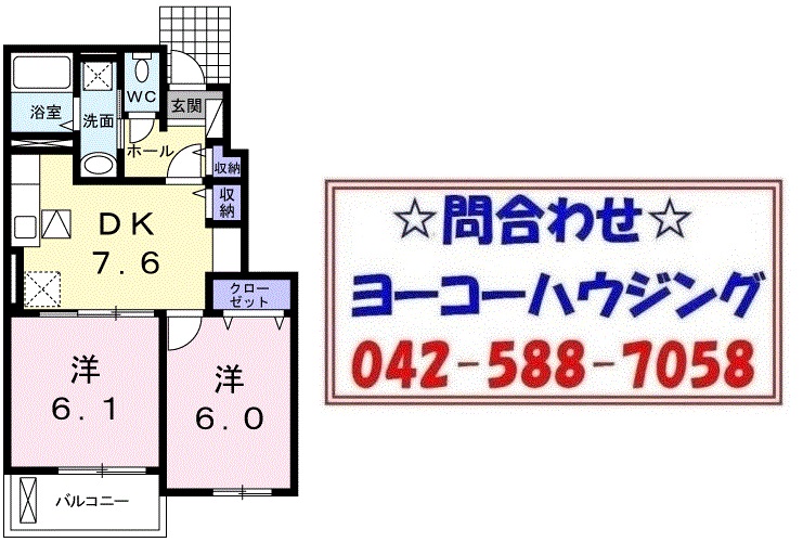 間取内容 | 洋室6.1畳 洋室6畳 DK7.6畳 |