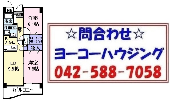 | 間取内容 | 洋室7.8畳 洋室6.1畳 LDK12.2畳 |