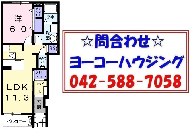 | 間取内容 | 洋室6.0畳 LDK11.3畳 |