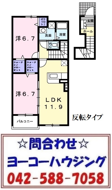 間取内容 | 洋室6.7畳 洋室6.7畳 LDK11.9畳 |
