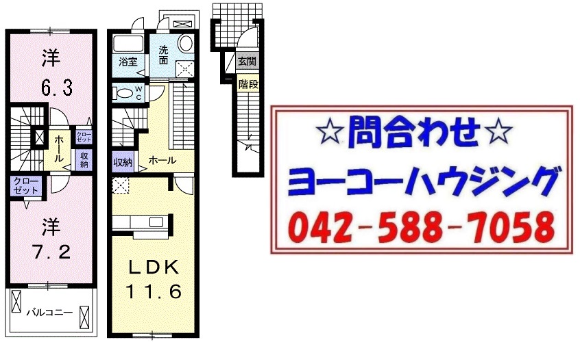 間取内容 洋室7.2畳   洋室6.3畳   LDK11.6畳